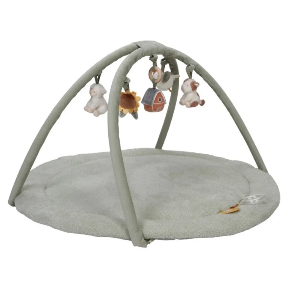 Fomenta la exploración. Desafiará a tu pequeño a moverse, alcanzar y agarrar con esta alfombra de actividades cautivadora. La alfombra es super suave, tiene forma redondeada en la base con un grosor de 2 cm, lo que la hace muy confortable y está inspirada en la estética de la granja de la colección Little Farm, con 5 diferentes suaves juguetes colgantes que mantendrán a su bebé entretenido y desarrollará la coordinación ojo-mano.