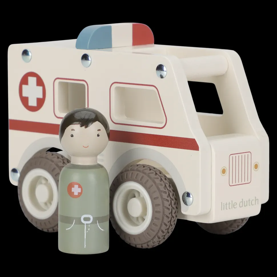 ¡Sirena, hora de ayudar! Esta ambulancia de madera con ruedas de goma transporta rápidamente a los pacientes al hospital. Dentro hay espacio para un paciente y el set incluye una enfermera de madera. Conduce lo más rápido posible a urgencias, lleva al paciente adentro y cuida bien a todos. Esta ambulancia de juguete hace que el juego de roles sea aún más divertido. ¿Ayudarás a alguien a recuperarse hoy?