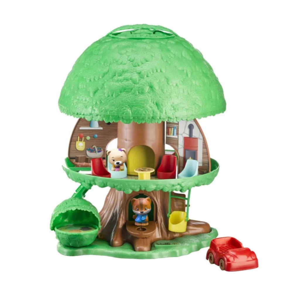 ¡Muchas actividades por descubrir, para representar a los personajes del bosque mágico: una manivela para subir y bajar el ascensor, un arbusto con un espacio de descanso oculto en su interior… Todo para crear muchas historias y jugar juntos!