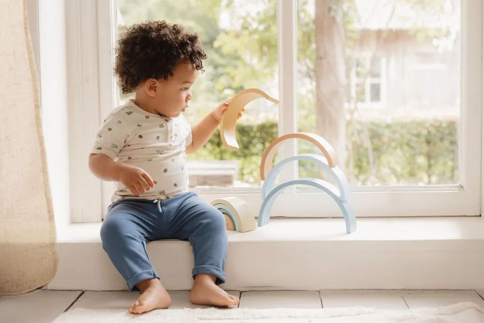 ¡Apila, clasifica y construye! Este arco irís amarillo y verde ofrece infinitas posibilidades creativas más allá de simplemente apilarlo para formar un arcoíris. Construye esculturas, crea túneles para trenes y autos, usa tu imaginación y encontrarás infinitas ideas para jugar con los arcos. Fabricado en madera, este apilador de arcoíris fomenta el juego imaginativo y mejora las habilidades motoras finas. Descubre la versatilidad de este juguete y sorpréndete con las innumerables formas en que se puede disfrutar. Además, agrega un toque encantador a la decoración de cualquier habitación infantil.