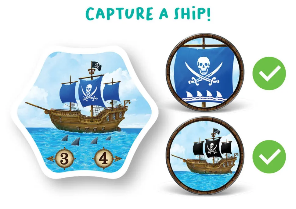 CONTENIDO: 72 cartas de juego, 12 cartas de tiburón, 6 fichas de animales marinos, 1 tiburón, 1 instrucciones
