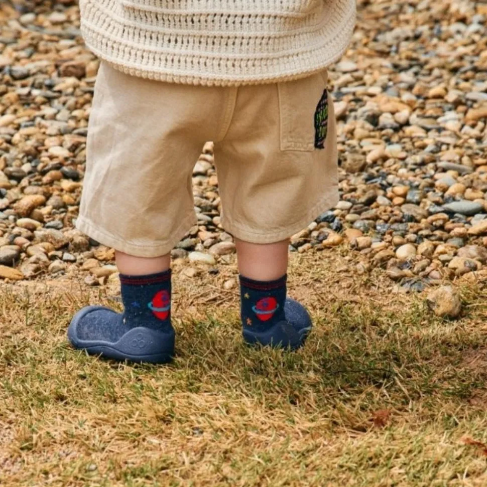 Fabricado con tejido de algodón con certificado OEKO-TEX®, es suave, transpirable y totalmente seguro para la piel sensible. Su suela antideslizante de goma flexible aporta seguridad y libertad de movimiento. Ideal para escuelas infantiles y salidas.