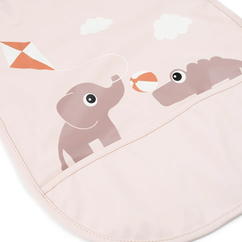 Babero con bolsillo recogemigas y velcro en el cuello para que sea mas sencillo poner y quitar. 100% polyester revestido con PU.