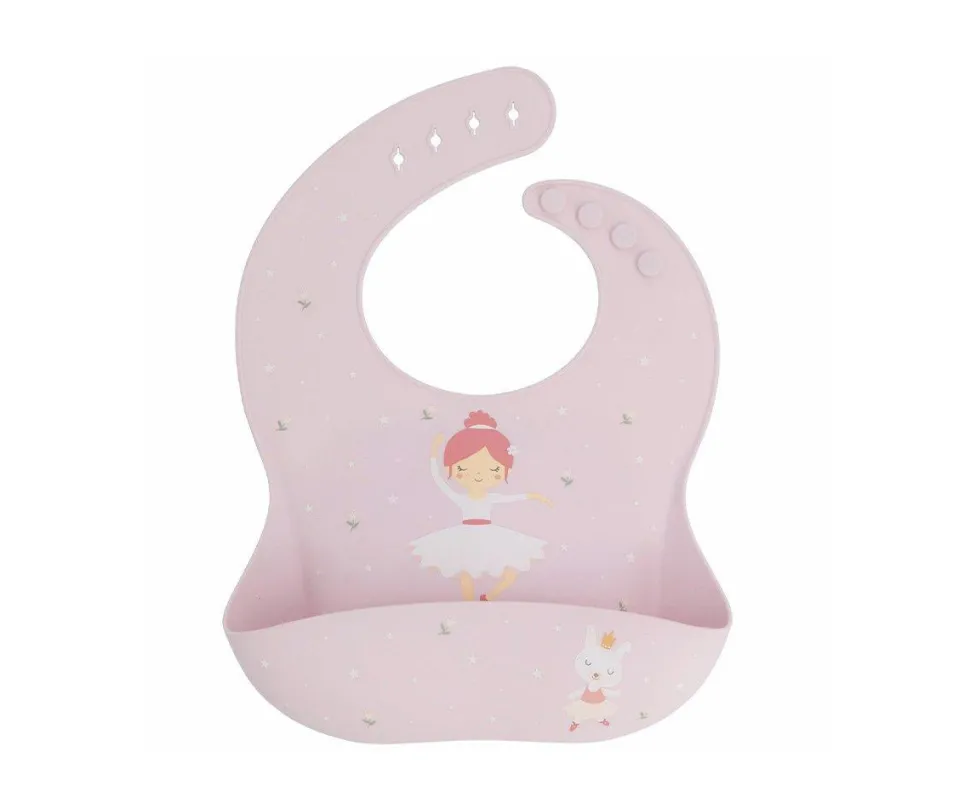 Babero de silicona con un bolsillo recogemigas para evitar que caiga la comida a la ropa.