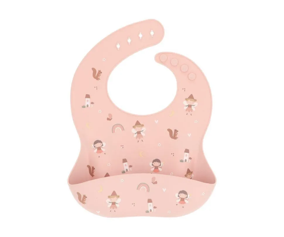Babero de silicona con un bolsillo recogemigas para evitar que caiga la comida a la ropa.