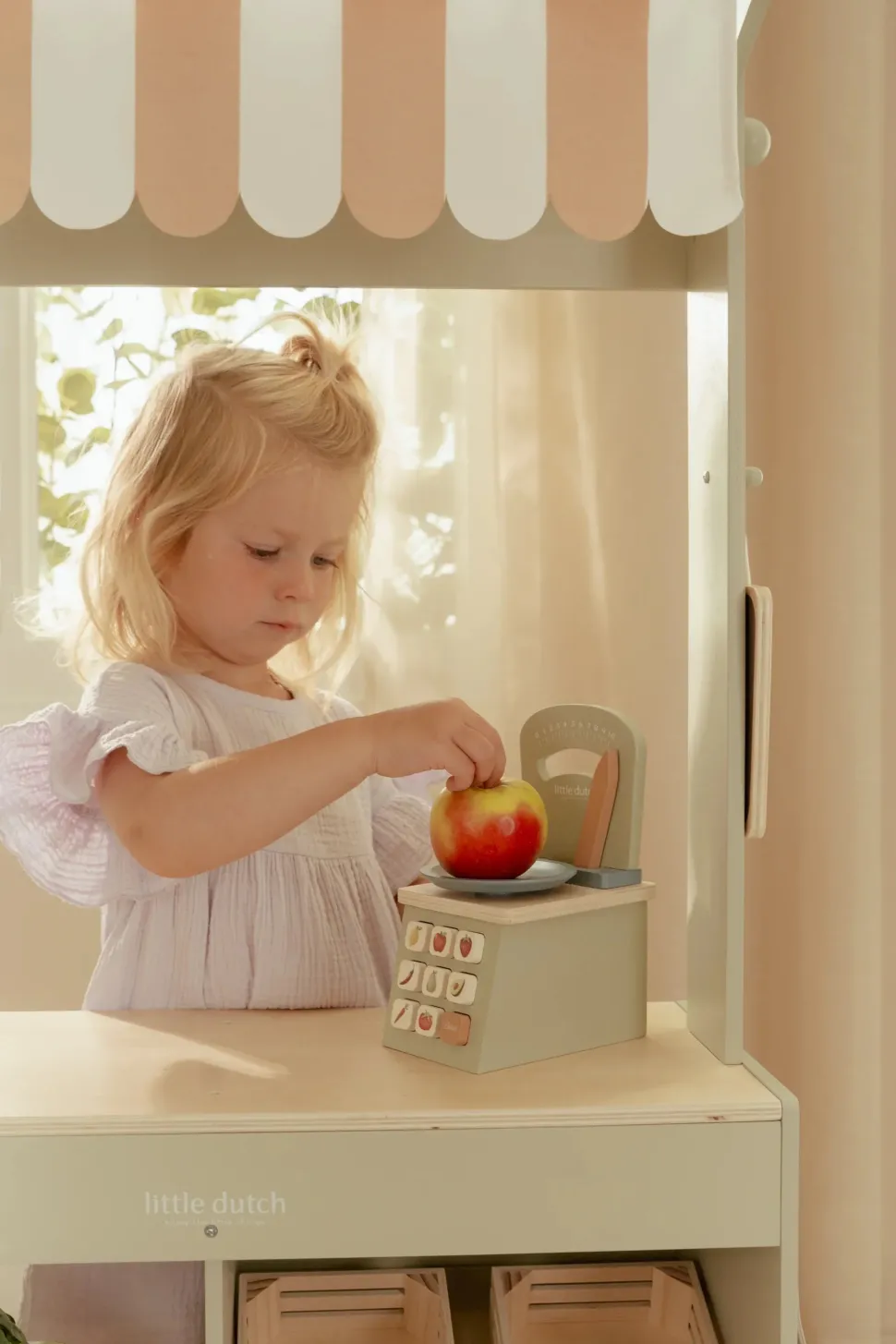 ¡Un ingrediente perfecto para cualquier cocinita! Con esta báscula de madera, los pequeños panaderos y chefs pueden pesar sus ingredientes con precisión. Coloca los productos en la báscula y observa cómo la aguja indica el peso. La báscula tiene botones reales con ilustraciones, lo que hace que jugar en la cocina sea aún más realista. ¡Perfecta para combinar con la cocina y el set de repostería para una diversión sin límites!
