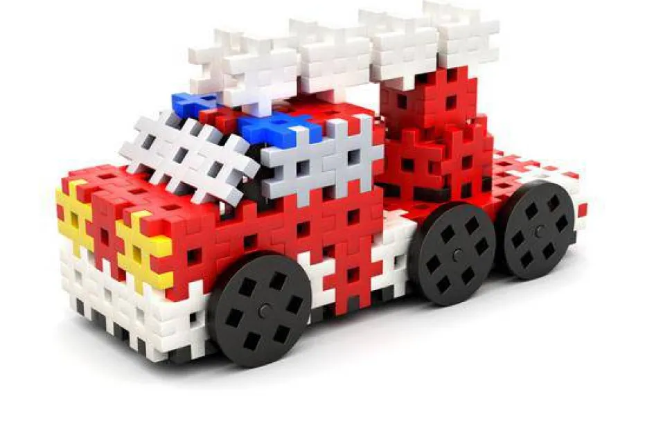Esta caja contiene 160 piezas variadas para representar 4 vehículos de bomberos.