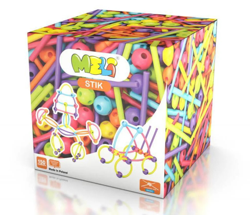 Para un buen comienzo, dale a tu pequeño Meli Stik 150 (en el que encontrará 100 palos y 50 bolas) ¡y despierta al pequeño constructor que lleva dentro!