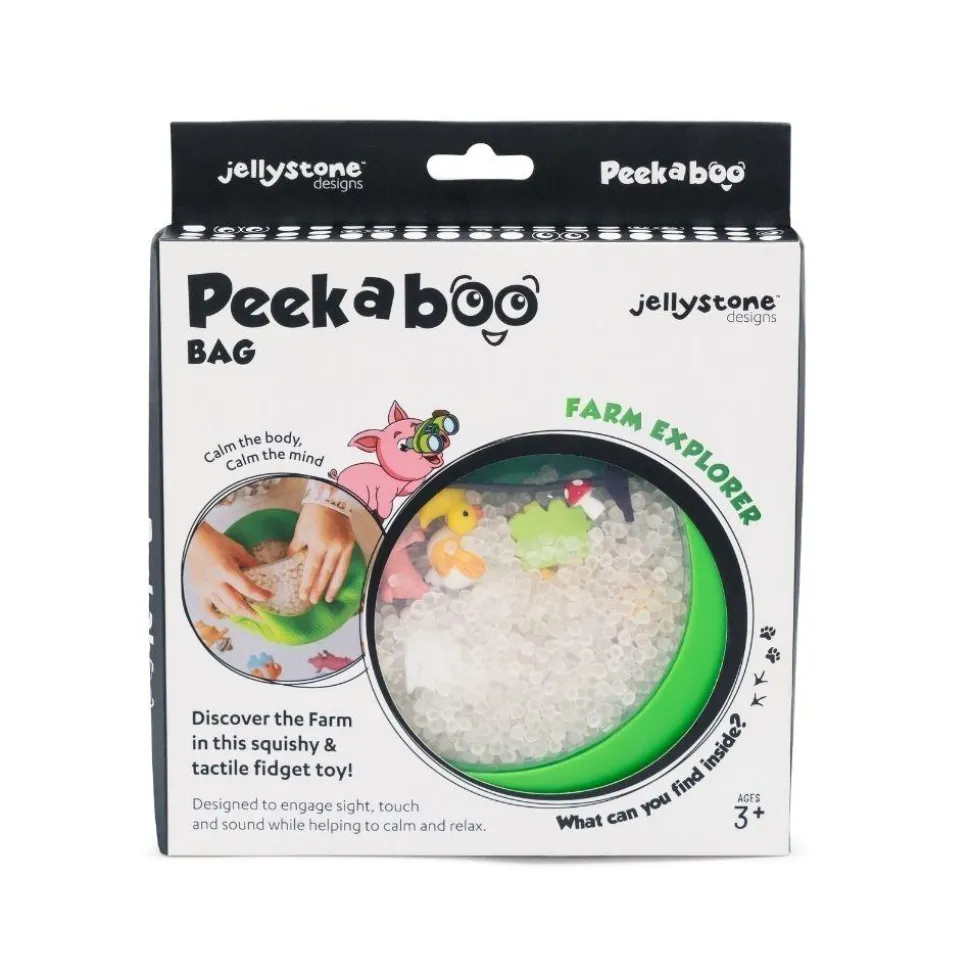 La Bolsa Sensorial Peekaboo es un juguete portátil, táctil y suave, diseñado para estimular la curiosidad y los sentidos de los más pequeños. Perfecta para juegos tranquilos y educativos, combina una experiencia sensorial completa con diversión sin ensuciar.