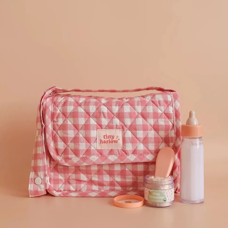 El set Tiny Harlow Tiny Nurturers es el accesorio perfecto para ir de paseo con tus muñecos favoritos. Este adorable set incluye una bolsa acolchada para pañales de muñeca, un biberón mágico que se «vacía» al alimentar al bebé y un tarro de cereales para muñecas. Cada set viene empaquetado en una bonita caja de regalo, lo que lo convierte en un regalo ideal para cumpleaños u ocasiones especiales.