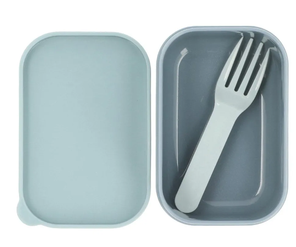 Esta pequeña cajita de fruta con tenedor, está pensaba para meter dentro de otra caja de almuerzo más grande y llevar la fruta o pequeños snacks separados del resto de almuerzo.