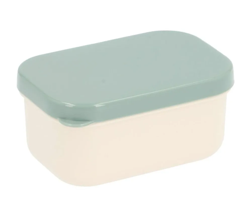 Esta pequeña cajita de fruta con tenedor, está pensaba para meter dentro de otra caja de almuerzo más grande y llevar la fruta o pequeños snacks separados del resto de almuerzo.