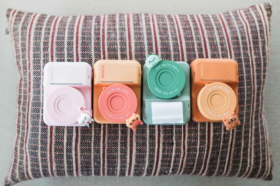 Perfecta para cumpleaños o Navidad, esta cámara viene con un cuaderno y lápices de colores para que los niños coloreen sus fotos en blanco y negro. La cámara también está disponible en lindos diseños de zorros, dinosaurios y osos y además incluye pegatinas imaginativas y de dibujos animados. ¡Imprime en sólo 3 segundos! En comparación con las cámaras instantáneas en color convencionales, nuestra cámara cuesta solo 0,02 € por impresión en lugar de 1 € por impresión habitual. También puedes elegir si deseas imprimir la foto inmediatamente, guardarla o imprimirla más tarde. Nuestro papel de impresión no contiene BPA ni BPS y, por lo tanto, es seguro para su hijo y para el medio ambiente.