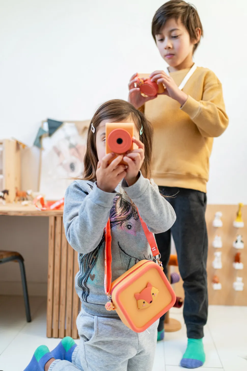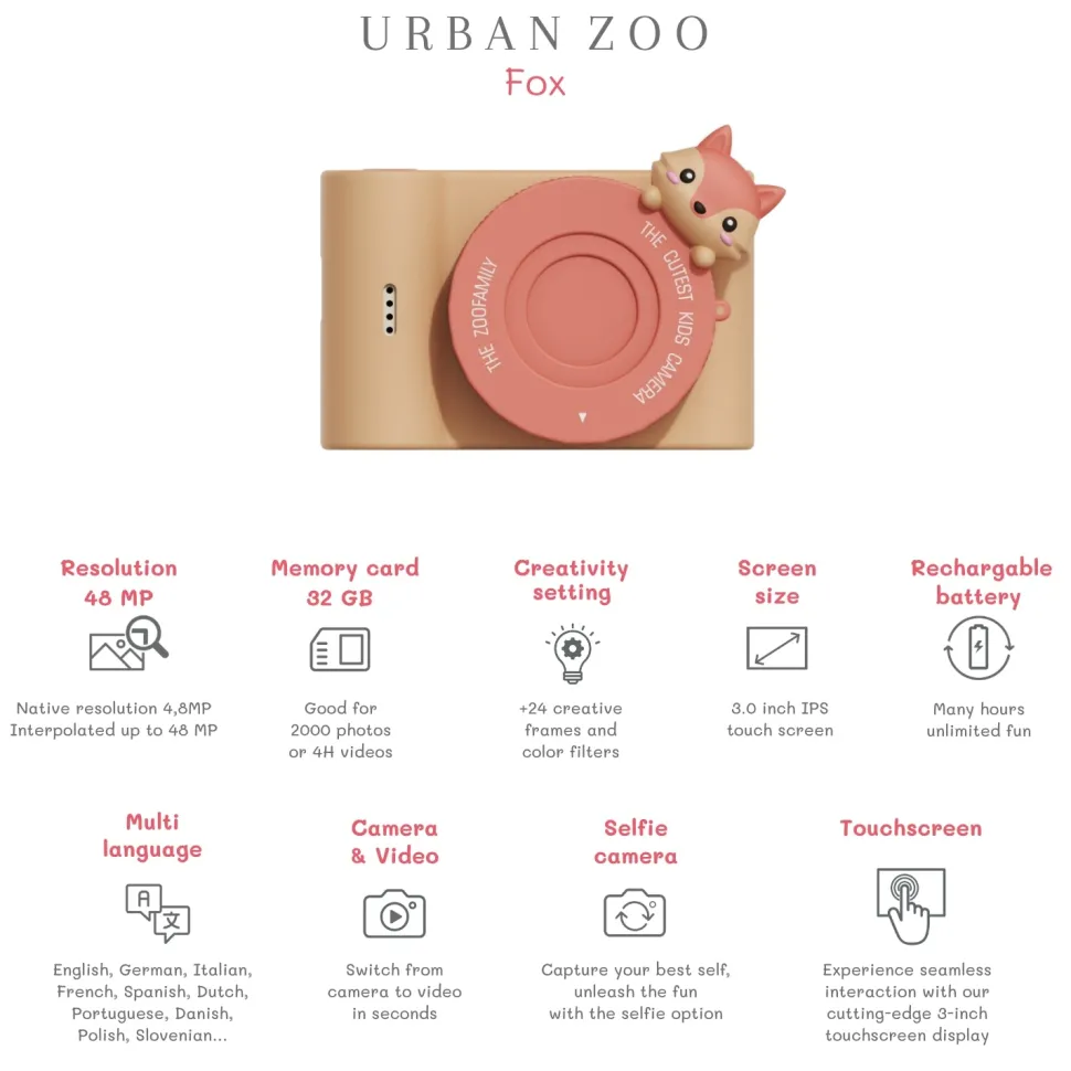 Su primera cámara. Esta cámara digital hace fotos y graba vídeo. La cámara digital infantil de The Zoofamily es extremadamente bonita, pequeña y liviana. Además, podrán imprimir sus fotos al instante, siempre que quieran.