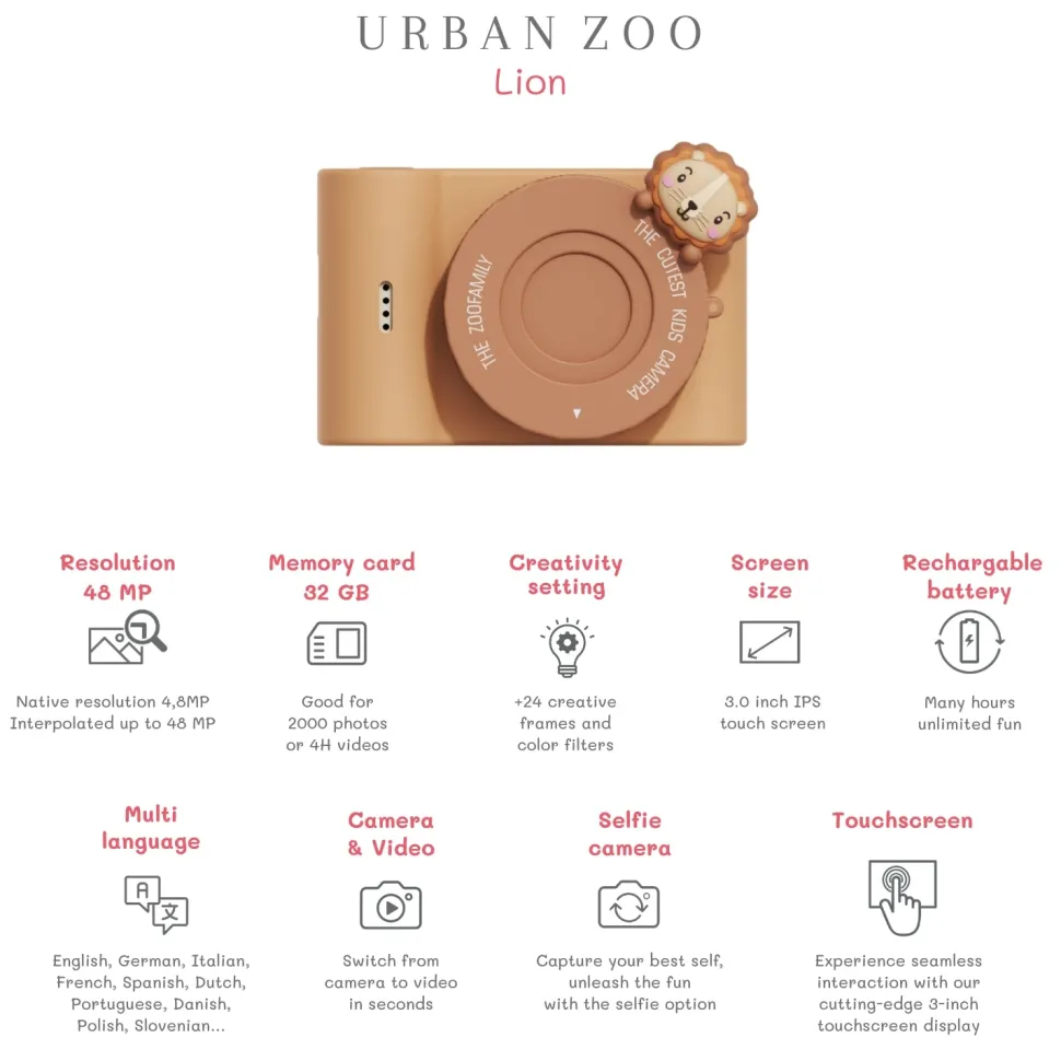 Su primera cámara. Esta cámara digital hace fotos y graba vídeo. La cámara digital infantil de The Zoofamily es extremadamente bonita, pequeña y liviana. Además, podrán imprimir sus fotos al instante, siempre que quieran.