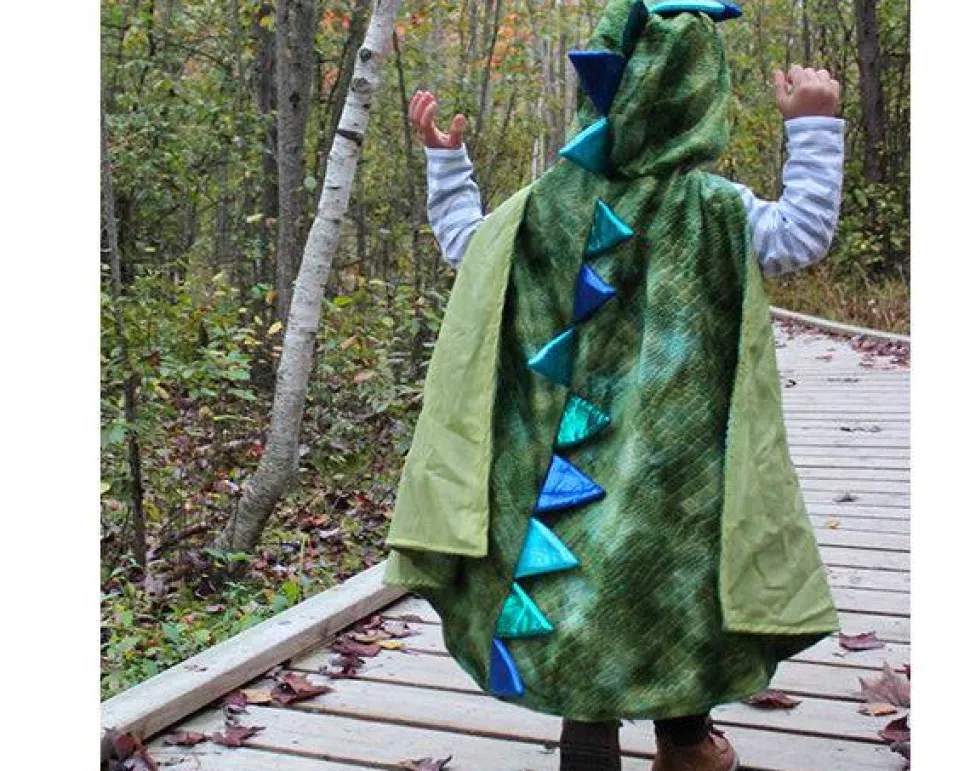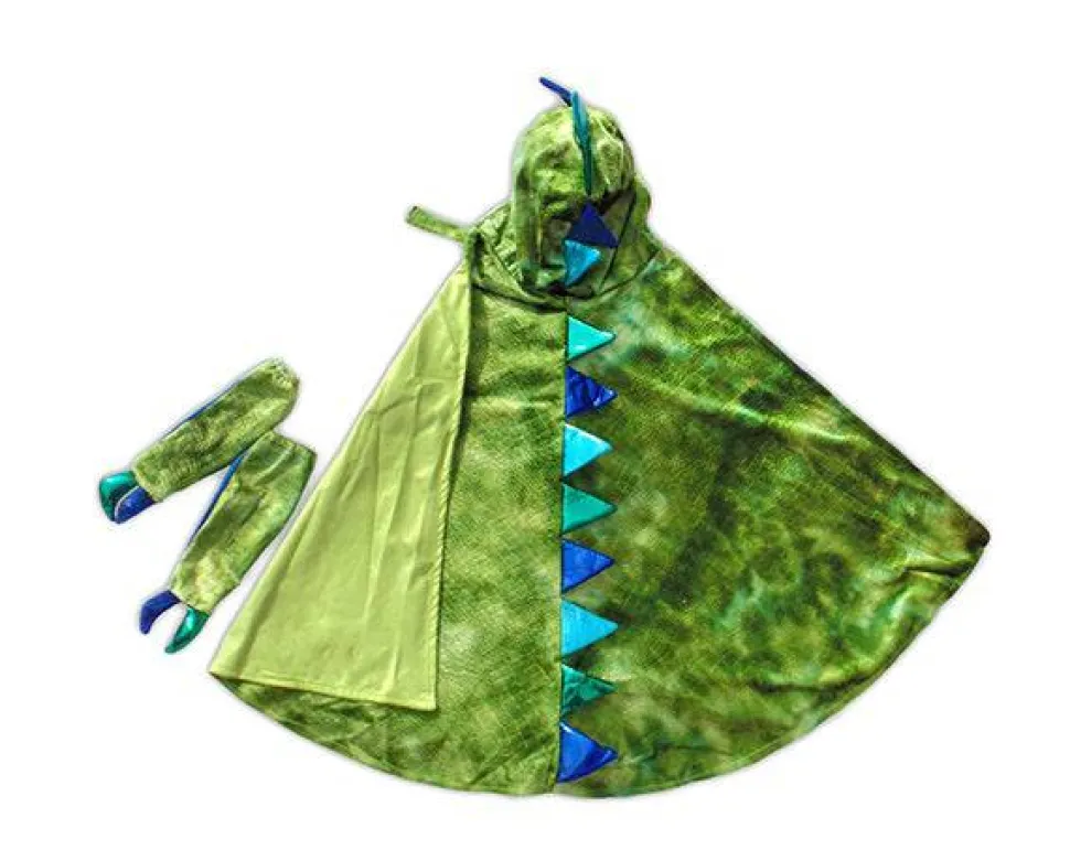Esta fabulosa capa de dragón seguramente inspirará muchas aventuras de fuego con una capa de terciopelo texturizado con escamas y garras rellenas. Esta capa de dragón está hecha de suave terciopelo triturado que tiene varios tonos de verde para lograr el look de dragón perfecto. La tela incluso está diseñada con escamas, por lo que el efecto lo convierte en una gran capa de dragón. Los picos están forrados con espuma y diseñados para pararse solos. El cierre de velcro en el cuello hace que esta capa sea fácil de poner y quitar.