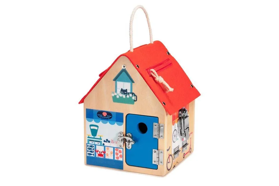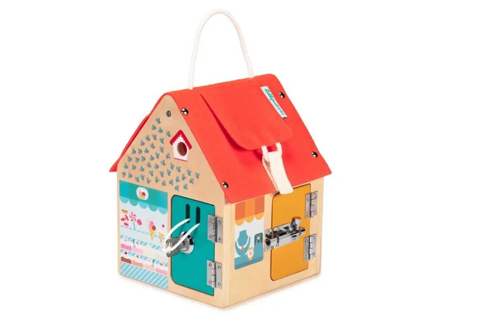 ¿A que bizcochito no le chiflan las cerraduras y llaves? Comprueba rápidamente que todas las puertas y las ventanas de tu casita están bien cerradas. Con esta casa, los pequeños aprenden diferentes sistemas de cierre, lo que estimula su imaginación mientras se divierten.