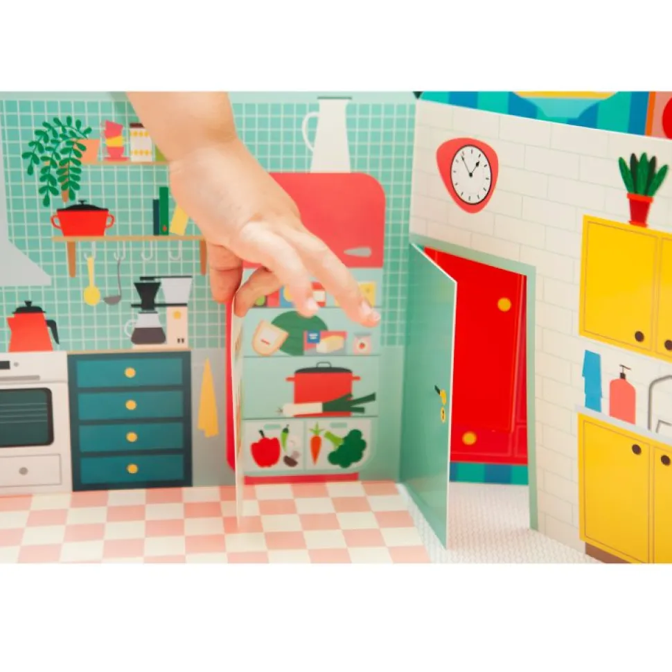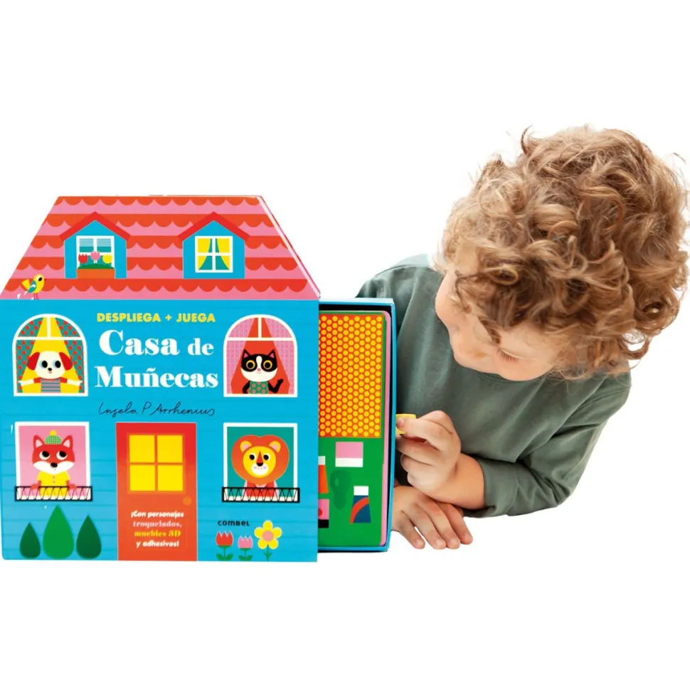 Esta espectacular casa de muñecas desplegable tiene cuatro habitaciones diferentes, muebles en tres dimensiones, personajes y pegatinas para decorar cada estancia. Presenta un formato perfecto para los que tienen poco espacio o para llevar de viaje, ya que las piezas se pueden guardar dentro del resistente cajón que hay en el lateral del libro.
