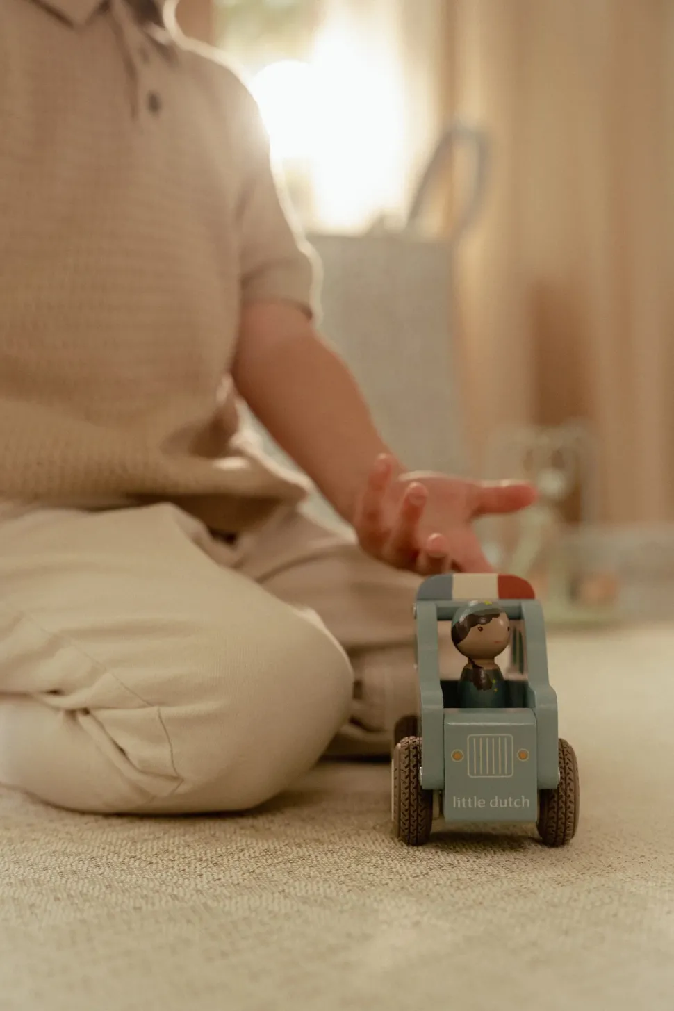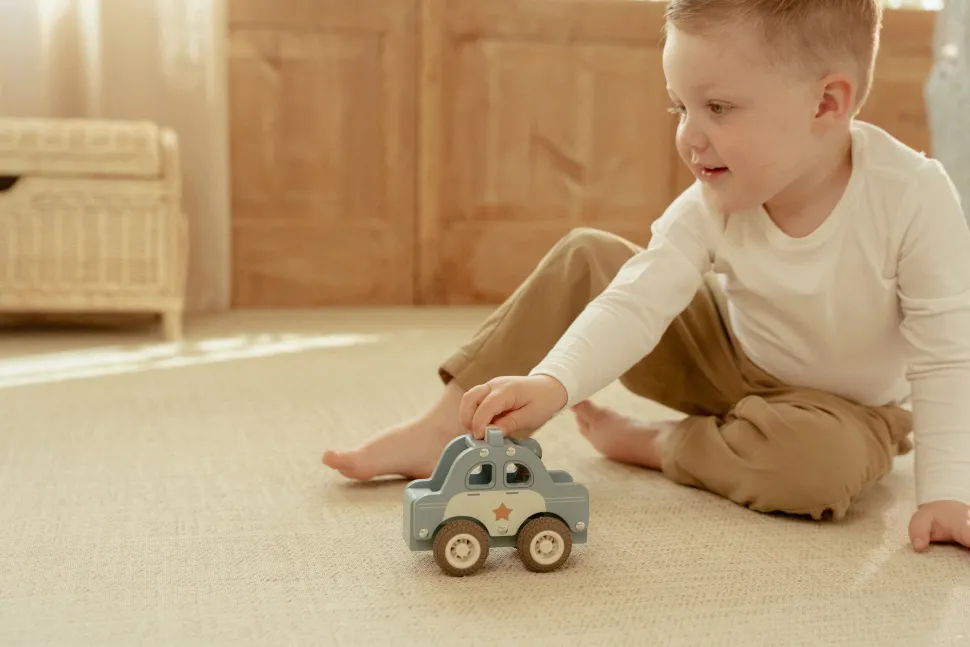 ¿Emergencia? ¡El coche de policía de madera corre a toda velocidad a la escena del crimen! Con ruedas de goma para una conducción suave y un policía robusto al volante, estás listo para mantener la ciudad segura. Recrea emocionantes persecuciones y mete a los criminales entre rejas. Este coche de policía de juguete es perfecto para juegos de rol y combina a la perfección con la comisaría de madera. ¿A quién ayudarás hoy en la ciudad?