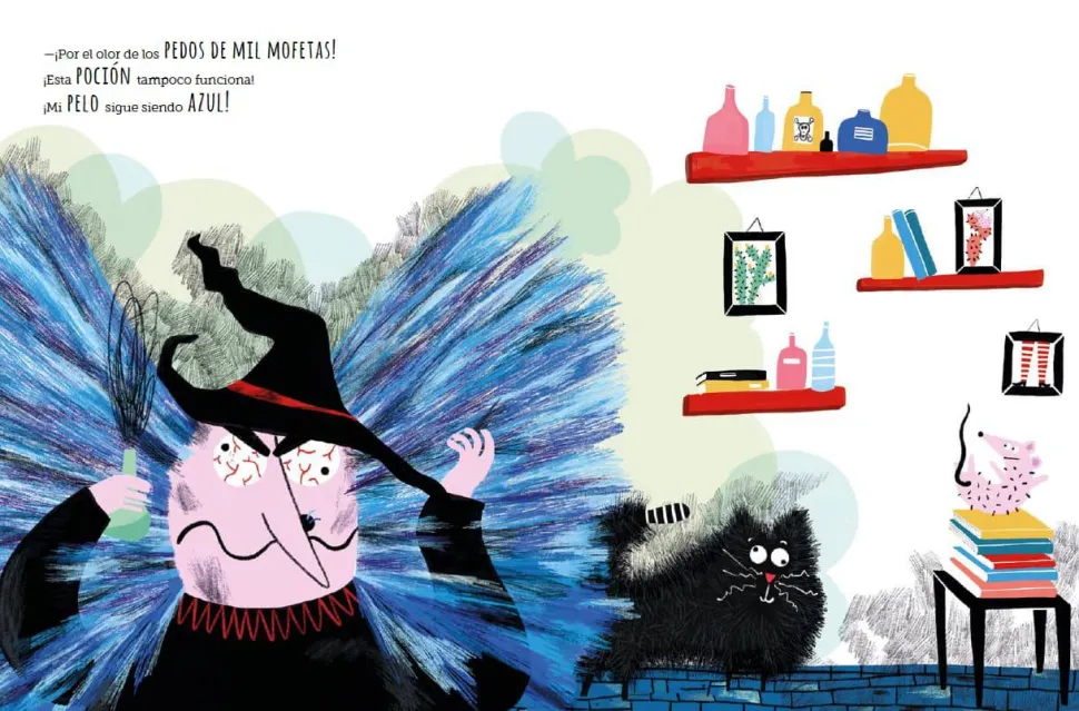 Esta bruja quiere robar un niño. Volando con su escoba llega al parque y allí encuentra a Nicolás jugando con unas muñecas. «¡Este mocoso será perfecto! Además parece travieso… Le roba las muñecas a su hermana para romperlas y molestarla…». ¡Pero la bruja se llevará una gran sorpresa!