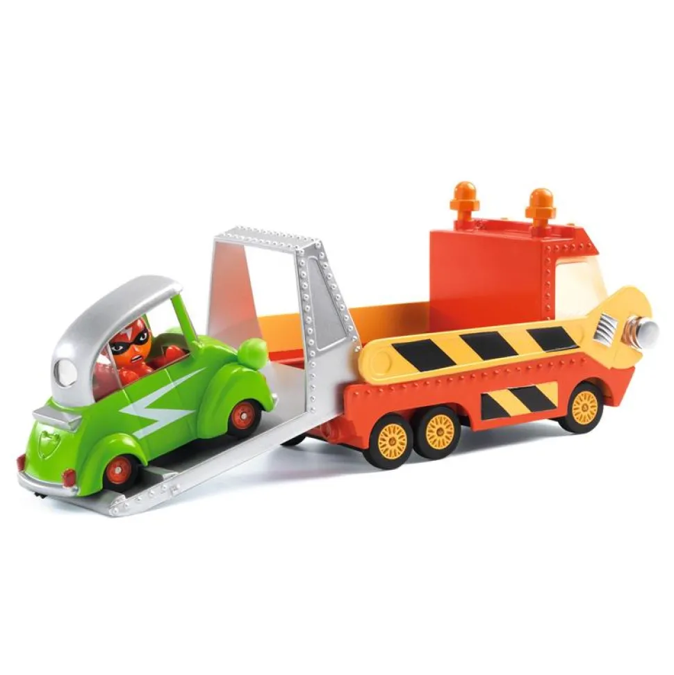 Este grua remolcadora de Djeco es un pequeño modelo en miniatura a escala 1:43 y tiene un conductor fijo en el asiento (no se extrae), que encaja con el diseño. Tiene suspensión en las cuatro ruedas.