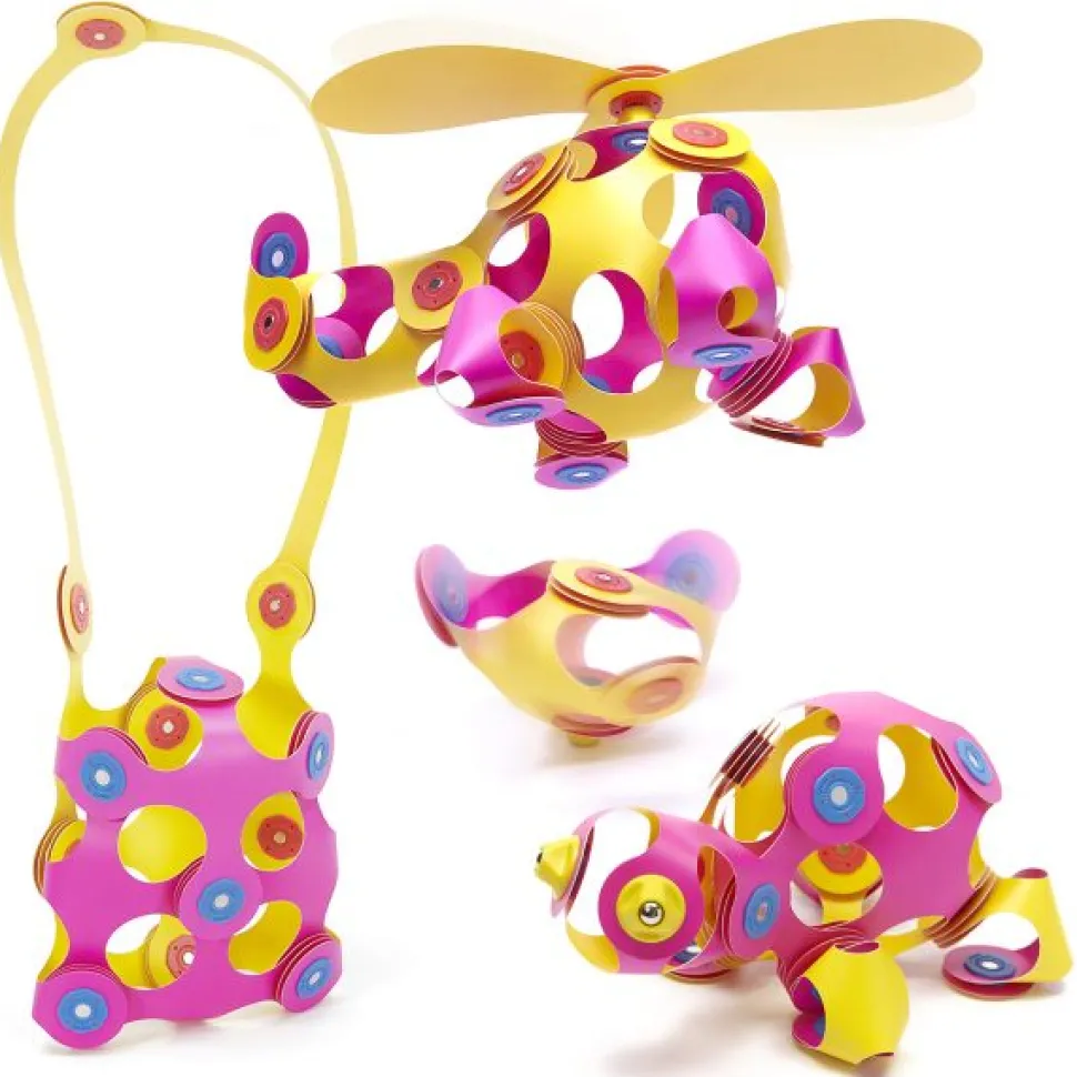 30 piezas en 8 formas únicas de CLIXO y una guía de inicio rápido. Con este pack se pueden construir hélices o molinos porque contiene 3 piezas en forma de spinner para que las piezas puedan girar sobre si mismas.