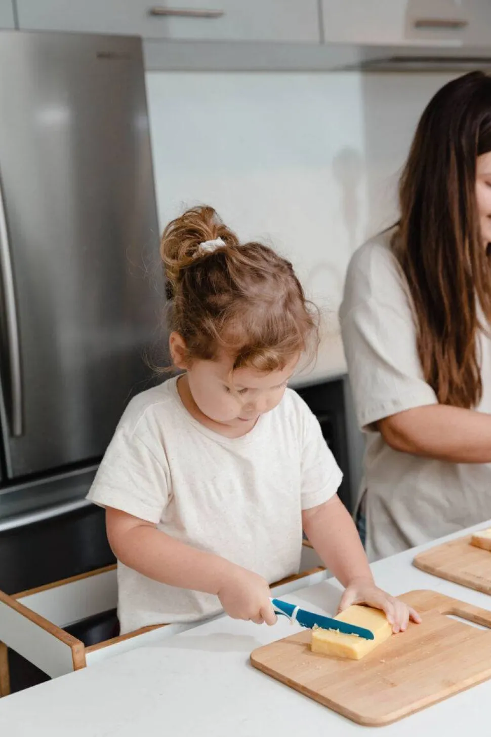Una forma divertida y sana para que los padres enseñen a sus hijos una de las destrezas más importantes de la vida; cocinar. A los niños les encanta cocinar, déjalos que sean ellos los que corten las frutas y verduras .