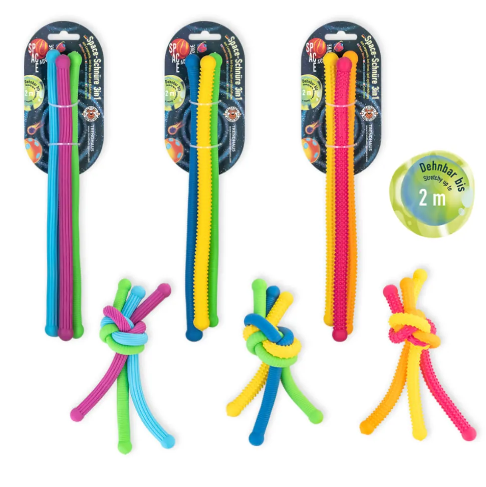 Cuerdas sensoriales de silicona extensibles con diferentes texturas. El paquete contiene 3 cuerdas.