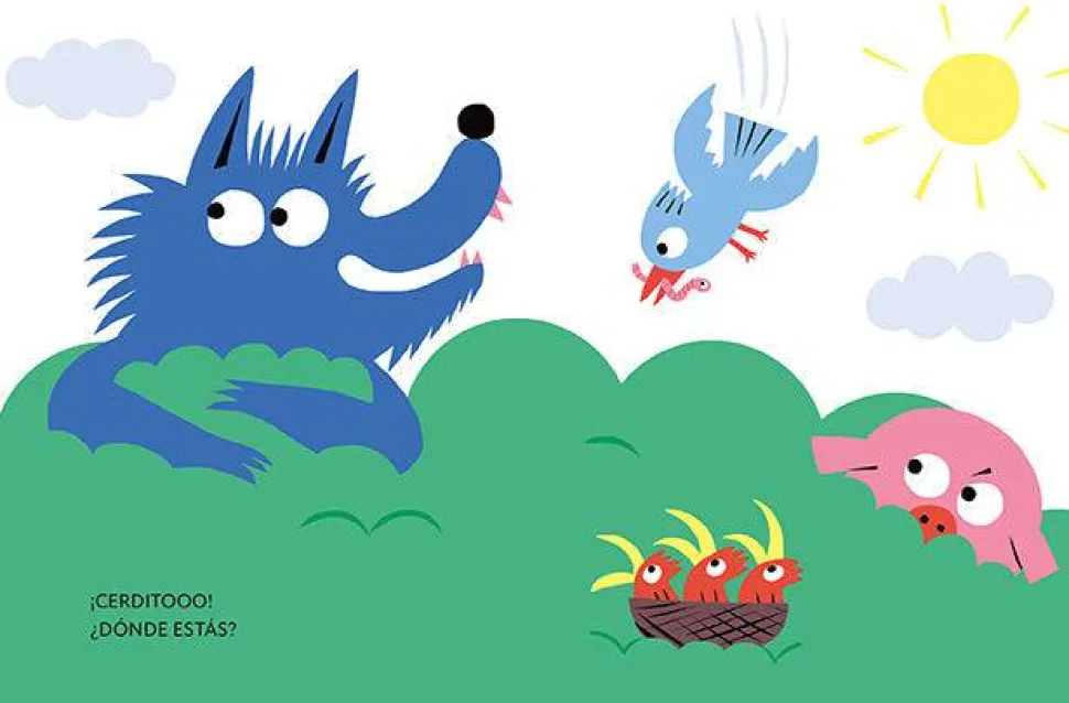 Este lobo busca al cerdito por todos sitios: en el árbol, detrás de la roca o dentro de la casa. El cerdito se esconde hasta que… ¿Qué ocurrirá cuando el lobo encuentre al cerdito?
