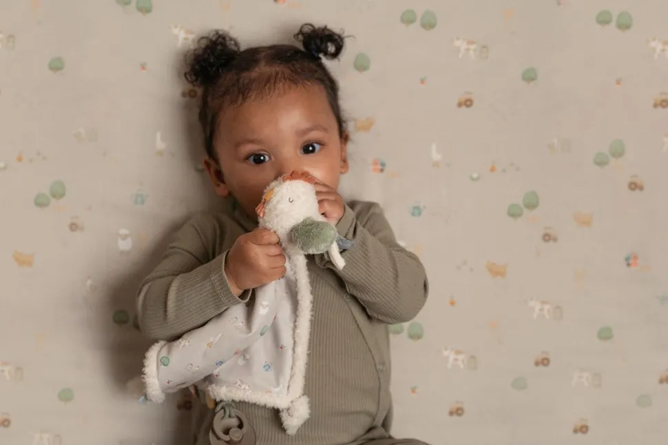 Este delicioso doudou con diseño Little Farm y ofrece muchos detalles divertidos para descubrir, como lindas etiquetas que estimulan los sentidos y un lazo de algodón para sujetar fácilmente un chupete o anillo de dentición. La suavecita gallina le da un toque divertido a este doudou de tela para abrazar.