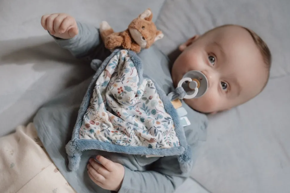 ¡Acurrúcate para sentirte cómodo! Mantén este suave paño de abrazos a tu alcance para recibir abrazos reconfortantes en cualquier momento y en cualquier lugar. Impreso con el diseño Forest Friends, presenta una variedad de características divertidas para que los bebés exploren. Varias etiquetas que estimulan los sentidos, nudos fáciles de agarrar y un lazo para colocar un chupete o un mordedor. El pequeño zorro suave hace que el paño sea aún más tierno.