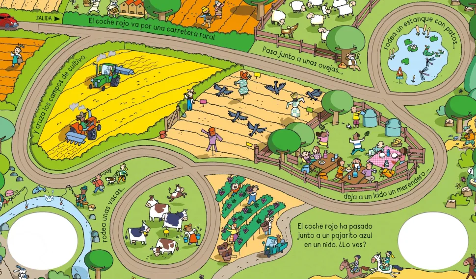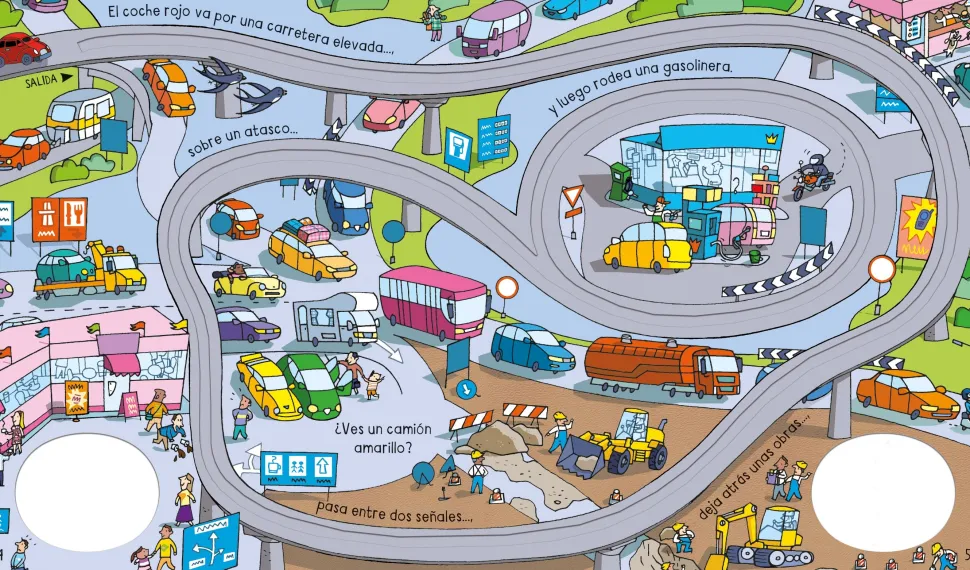 Un libro juguete muy entretenido con el que los niños podrán recorrer cuatro circuitos diferentes con un cochecito de cuerda. Los recorridos incluyen zonas verdes y urbanas hasta llegar a la costa y están llenos de detalles que descubrir y comentar. Un regalo estupendo para mantener a los pequeños entretenidos durante horas e incitarles a hablar de todo lo que vean durante su paseo en coche.
