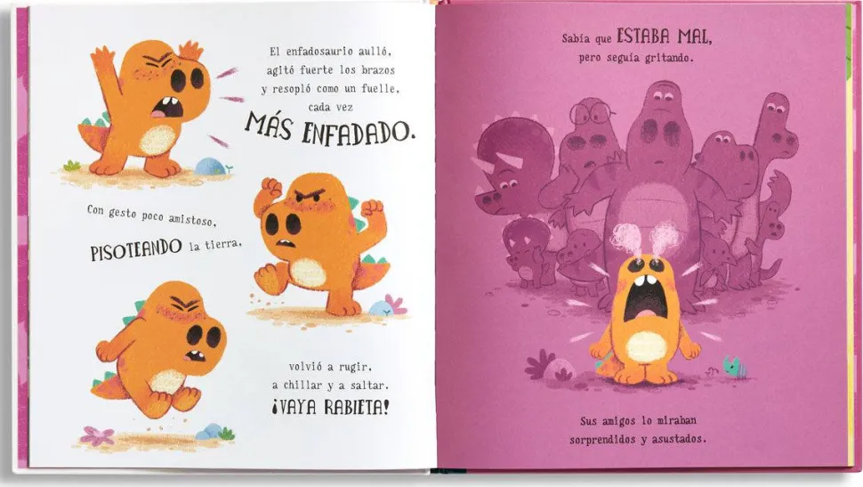 Aquella mañana el Enfadosaurio se levantó de buen humor, pero el día se fue torciendo. Y su enfado fue creciendo MÁS y MÁS y MÁS.