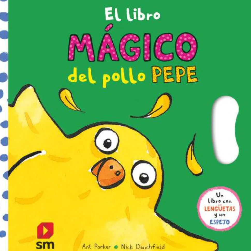 Un libro con grandes lengüetas tras las que se ocultan los amigos del pollo Pepe. Incluye un espejo