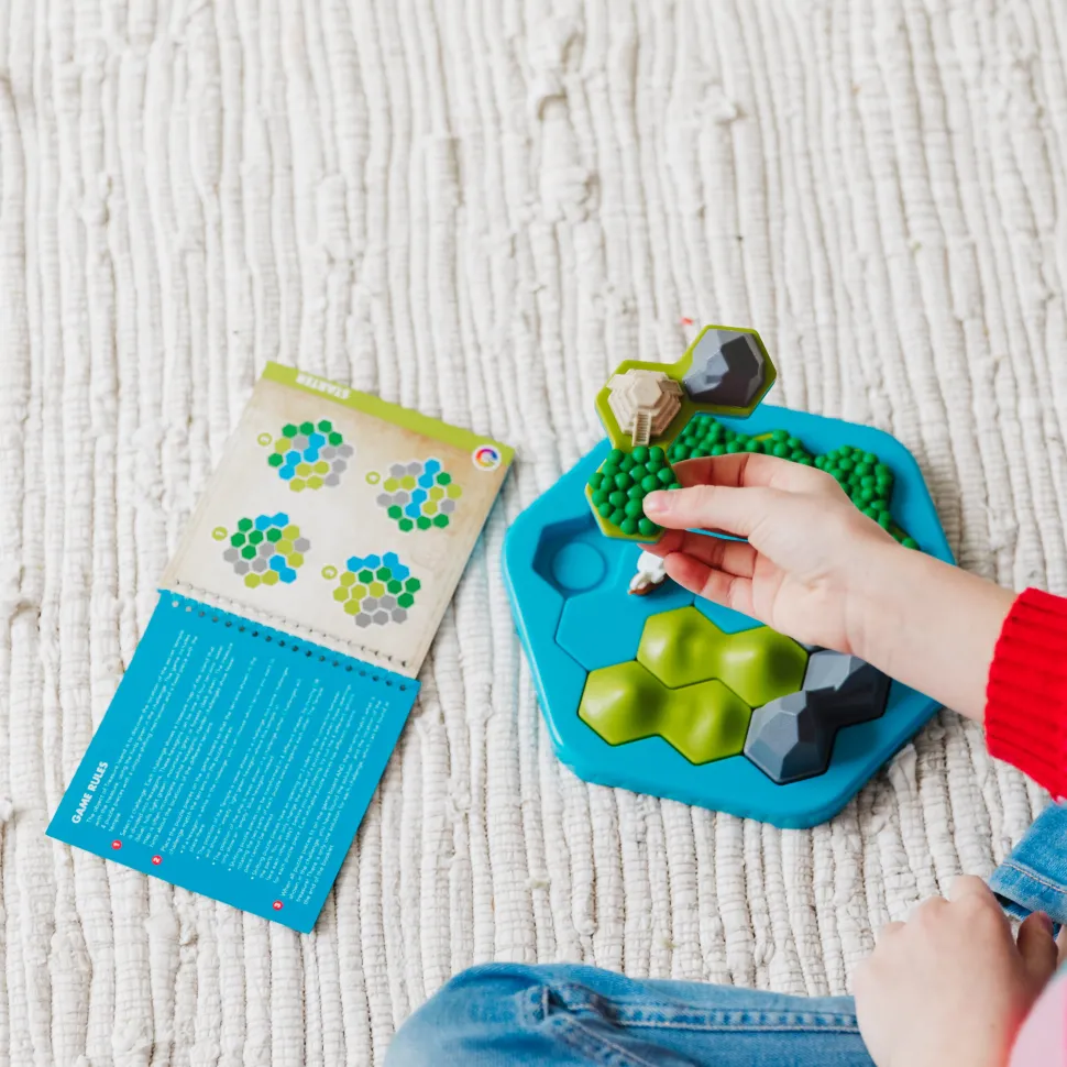 Contenido: 1 tablero, 5 piezas articuladas, libro con 80 desafíos y soluciones.