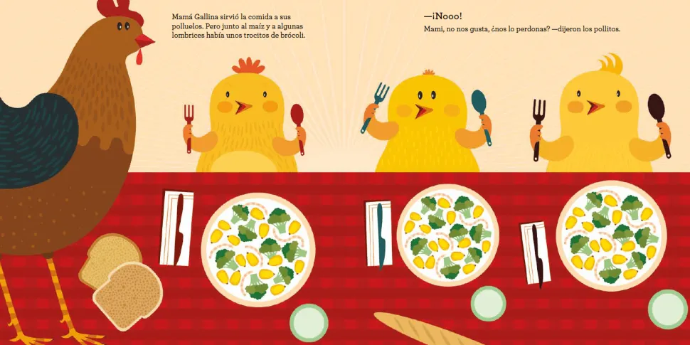 ¡No queremos comer Brócoli! A estos polluelos no les gusta comer verdura, pero la historia de la gallina Margarita les hará reír… Comer verduras puede ser muy divertido.