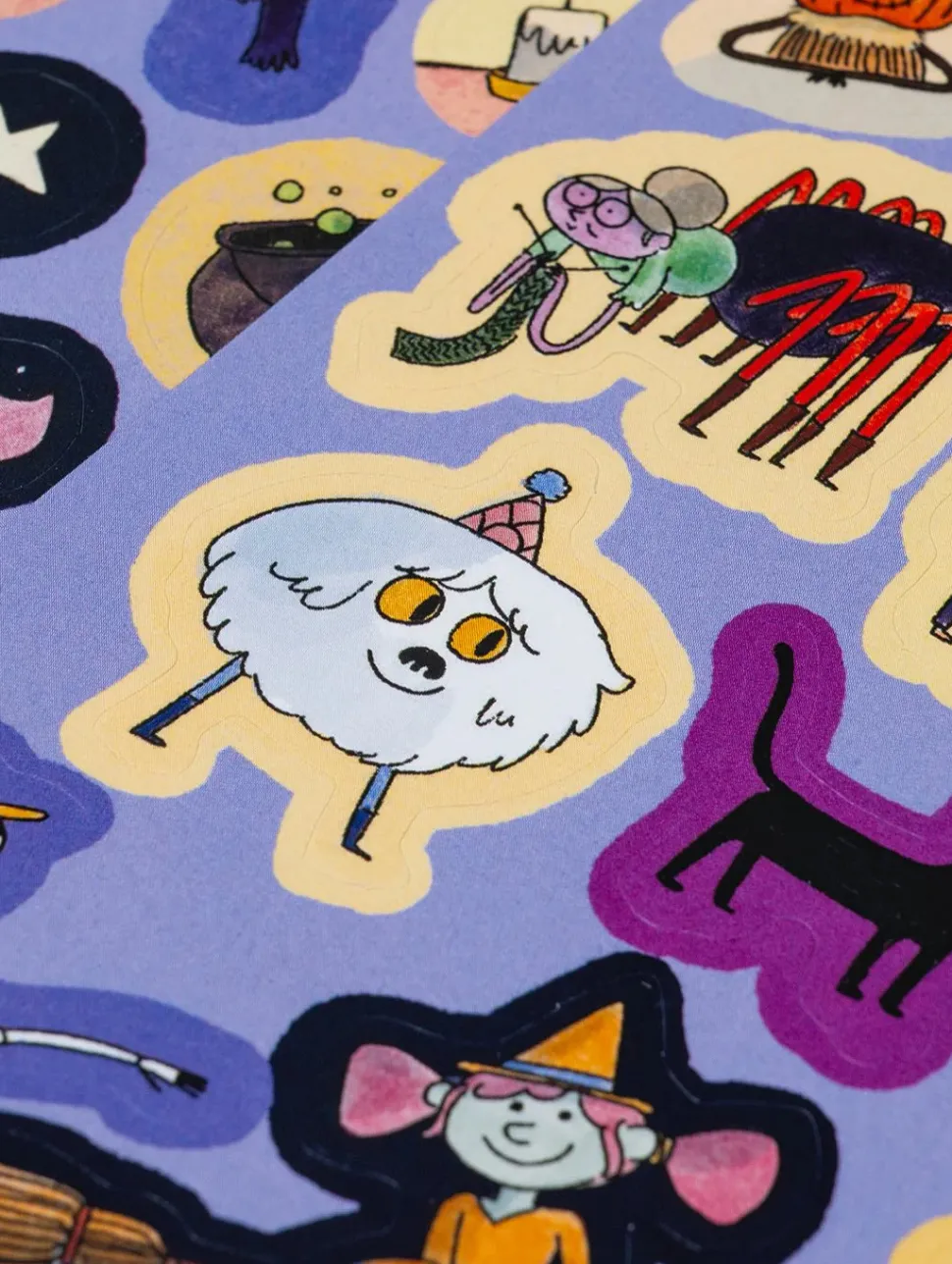 Diviértete creando tu propio póster: coloca 152 pegatinas removibles de monstruos y fantasmas, inventa infinitas historias y da vida al castillo encantado con cada detalle. En cada sombra parpadeante se esconde el placer de imaginar un mundo que es solo tuyo.