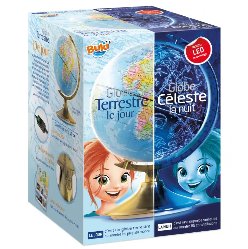 Un globo de 21 cm de diámetro para observar la Tierra de día y las constelaciones de noche. Armazón de metal.