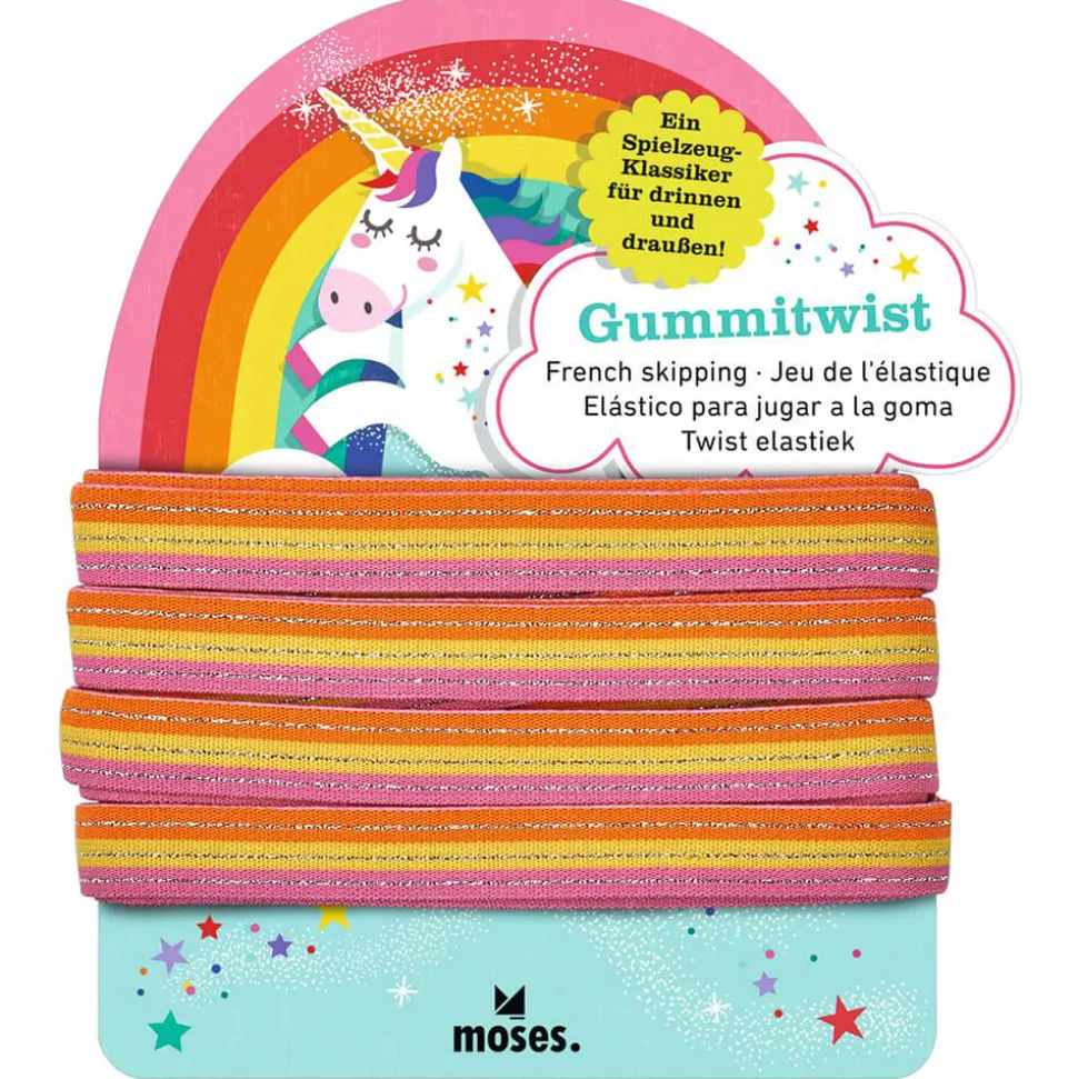 Goma twist Rainbow de 4 metros de largo. Hecha con hilo de purpurina.