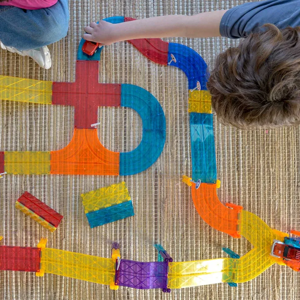 Crea tu pista, compleméntala y llévala al siguiente nivel con inéditas piezas! Este novedoso set temático permite crear una gran Pista de Carreras, además de expandir las versiones anteriores.