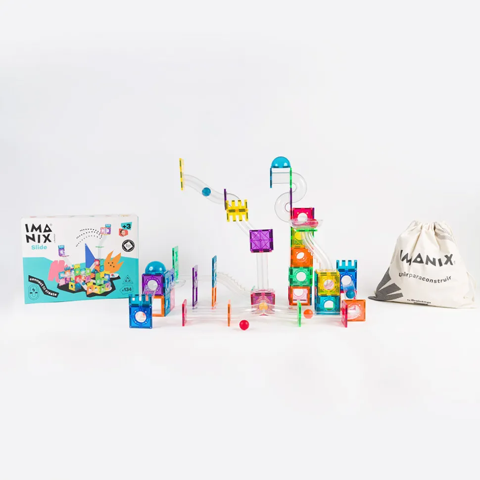 Imanix es uno de los juguetes que más gusta a los bizcochitos y bizcochitas. Miles de ellos ya han jugado y siguen juguando con ellos. Los Imanix Tobogán de 134 piezas son una opción ideal para aquellos que ya han jugado con Imanix y quieren seguir disfrutando del juego libre con más piezas y formas de juego.