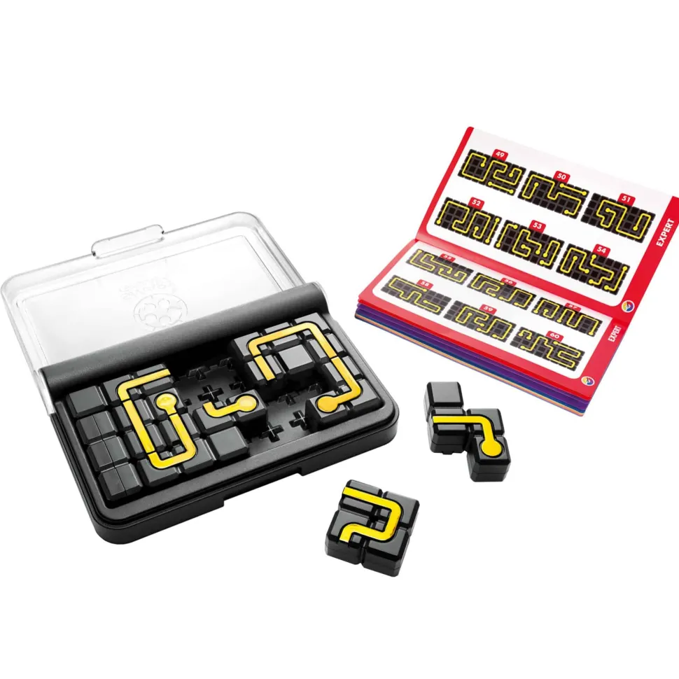 Coloca todas las piezas del IQ Circuit en el tablero de juego para crear circuitos. Cada reto muestra 2, 4 o 6 puntos de conexión; un circuito empieza y termina con un punto. Solamente hay una solución.