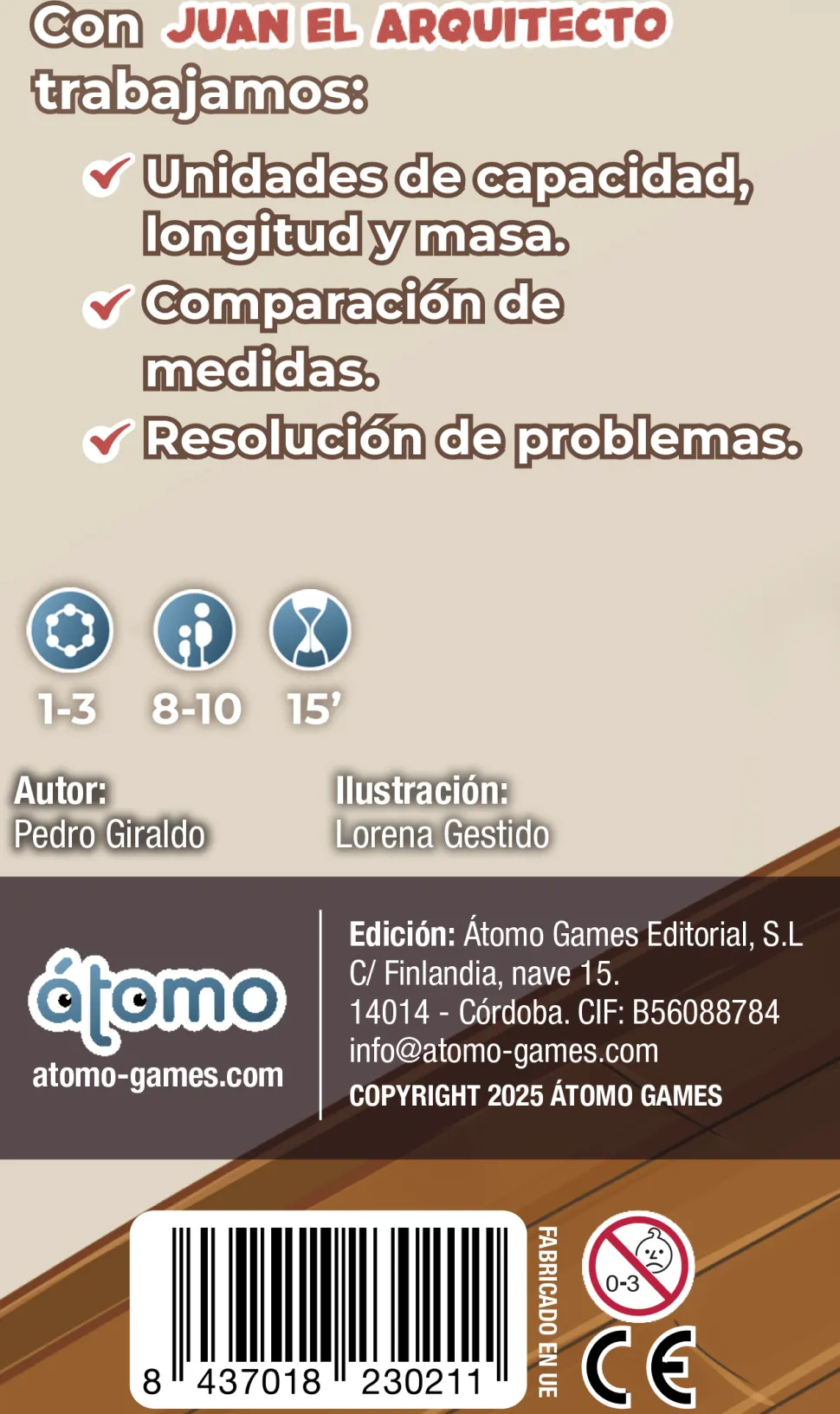 Juan el Arquitecto es un juego de cartas para niños con el que los más peques de la casa se divertirán y aprenderán a partes iguales, en esta ocasión gracias a su Juan y sus habilidades y conocimientos sobre mediciones y construcción.