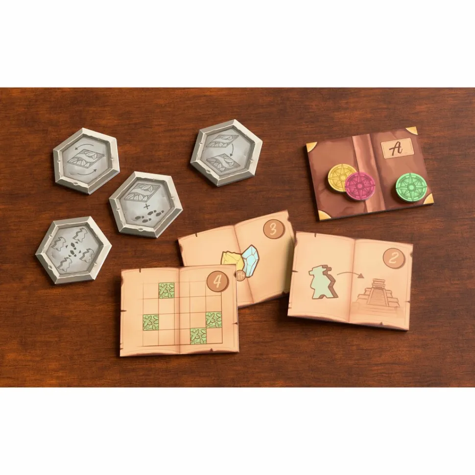 Bienvenidos/as de nuevo a Karuba! Comienza la expedición. Los equipos de exploración despejan rutas sinuosas, buscan templos olvidados y se enfrentan en una carrera codo con codo. La jungla es impredecible, el tiempo es apremiante… ¡y cada decisión cuenta! Quien consiga recuperar los tesoros más valiosos ganará esta emocionante expedición de competición.
