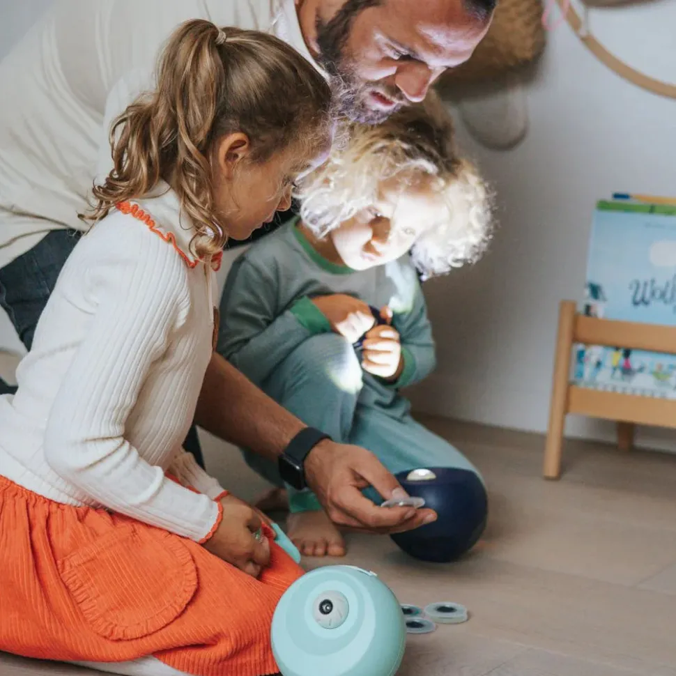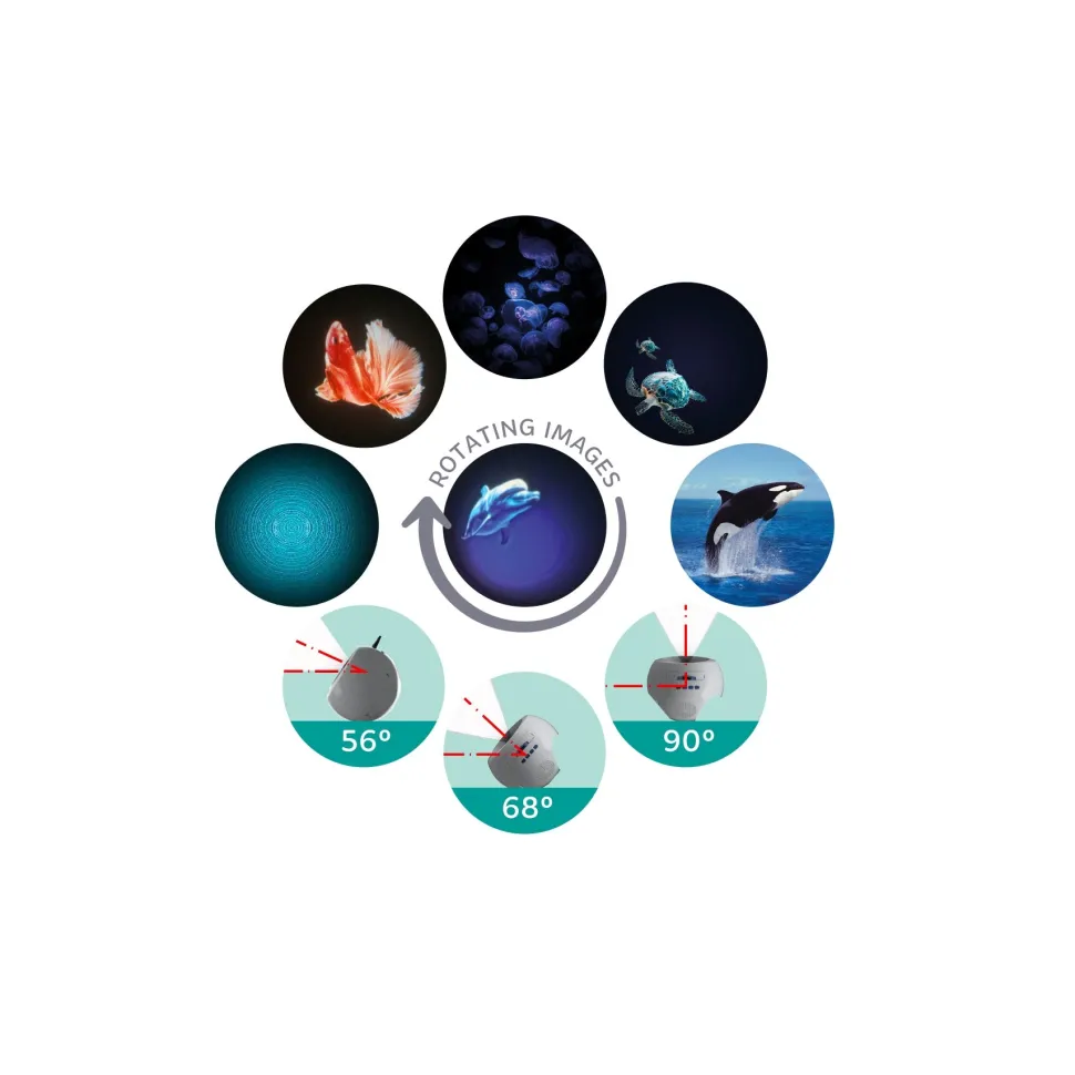 ¡Lleva la magia al dormitorio de tu hijo con KIDYSTAR! Este encantador proyector transforma las paredes y los techos en un cautivador espectáculo de luces con sus seis discos intercambiables. Con su folleto educativo ilustrado, estimula la curiosidad y relaja la mente a la hora de acostarse. Una invitación a la calma, a soñar despierto y a descubrir… para noches llenas de dulces sueños.