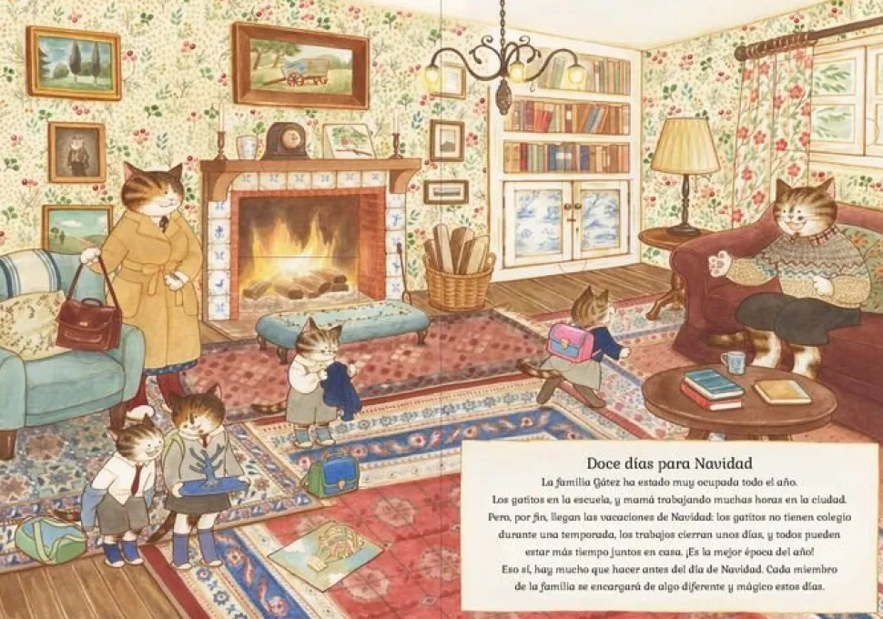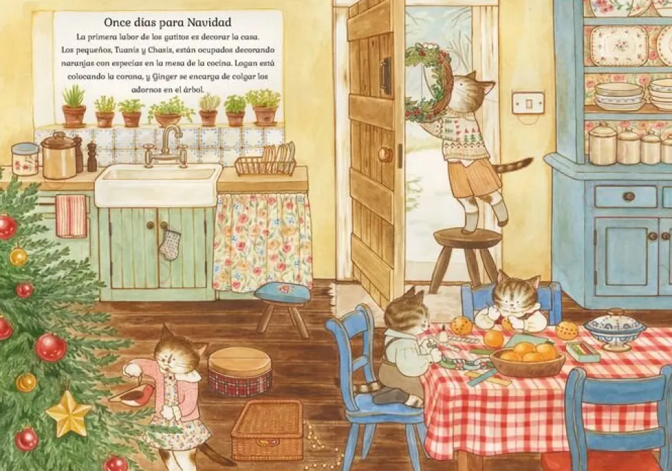 En esta ocasión, la familia de gatos, gatitos y abuelos felinos se preparan doce días antes del día de Navidad haciendo dulces navideños, decorando la casa y cantando en su pueblo, de casa en casa. ¿Qué sorpresas encontraremos en las páginas navideñas?