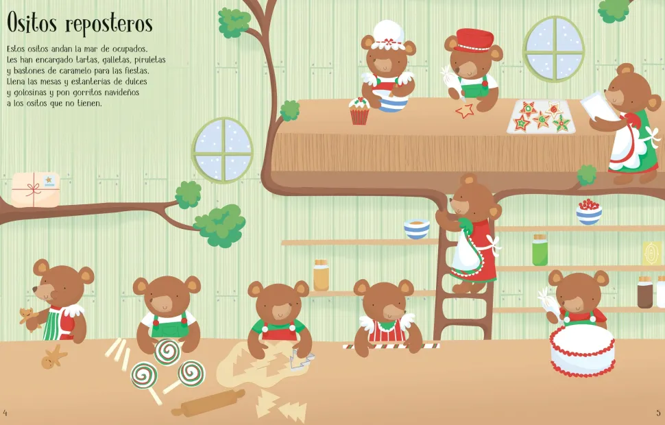Los chiquitines podrán unirse a los preparativos de estos atareados ositos que esperan con ansias la Navidad, hornear delicias navideñas, acudir a una fiesta de pingüinos, ayudar a los ratoncitos a construir grandes muñecos de nieve o envolver regalos con los elfos de Santa. Eso sí, para que todo cobre sentido, tendrán que añadir pegatinas al calendario de adviento.