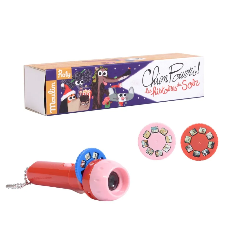 Contiene 1 linterna y 3 discos de historias.