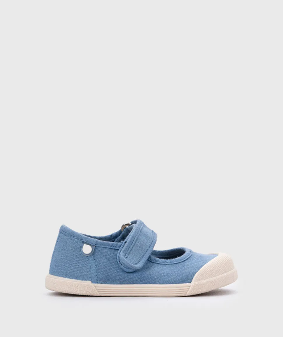 Zapatilla de lona de estilo merceditas 100% algodón, de concepto barefoot, cero drop, flexible, blandita y con plantilla extraíble. Lavar en agua fría no sin antes extraer la plantilla.