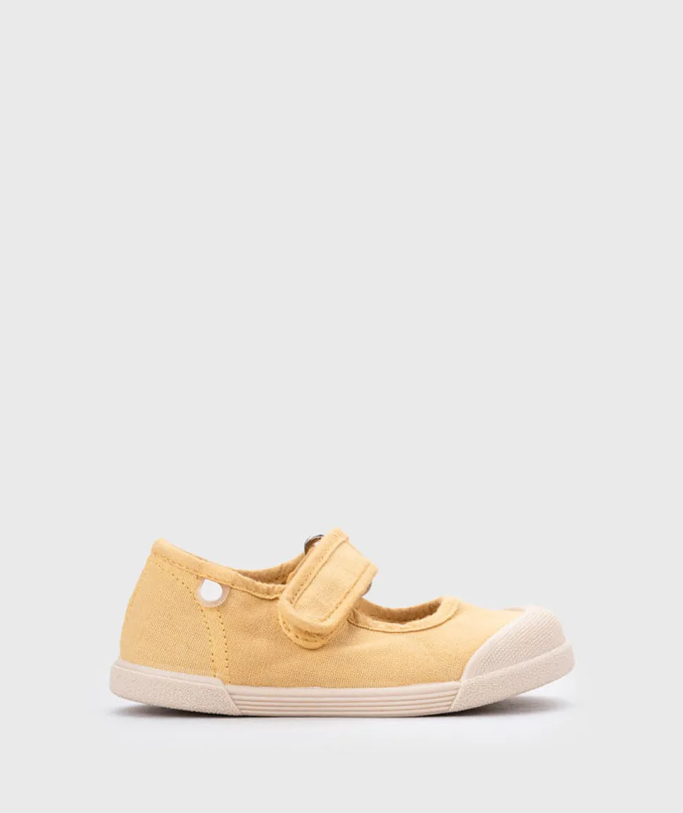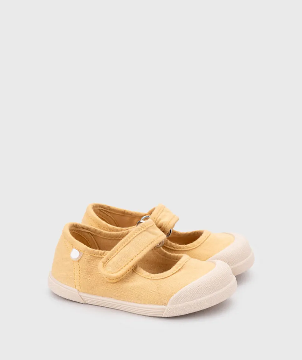 Zapatilla de lona de estilo merceditas 100% algodón, de concepto barefoot, cero drop, flexible, blandita y con plantilla extraíble. Lavar en agua fría no sin antes extraer la plantilla.